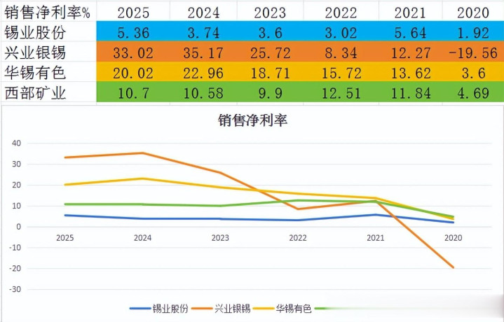 近几年,兴业银锡的净利率,升迁最为昭着。