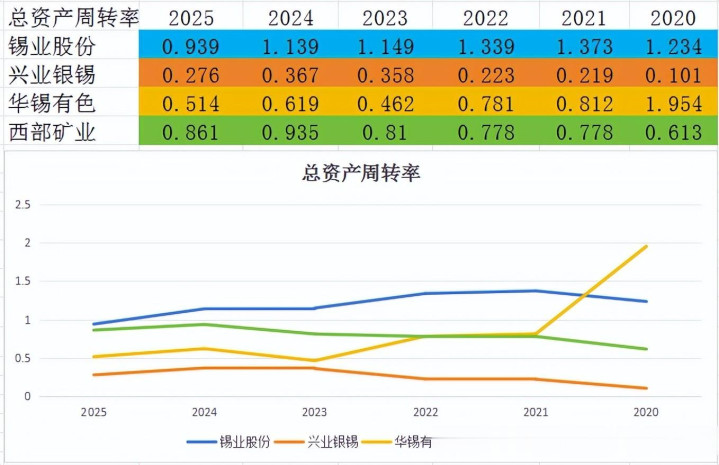 前三季度,钞票盘活速率最快的是锡业股份的0.939次,其次是西部矿业,华锡有色,兴业银锡。
