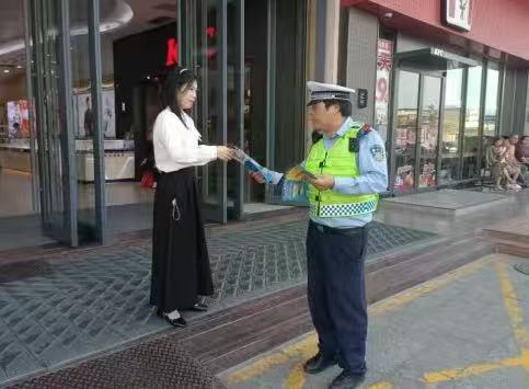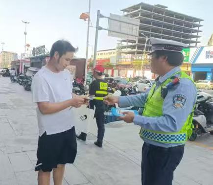 在商铺门前,巡警向规划者考验非生动车程序停放、“一盔一带”等安全学问,教唆众人自愿降服交通限定,幸免占用盲谈及生动车谈。