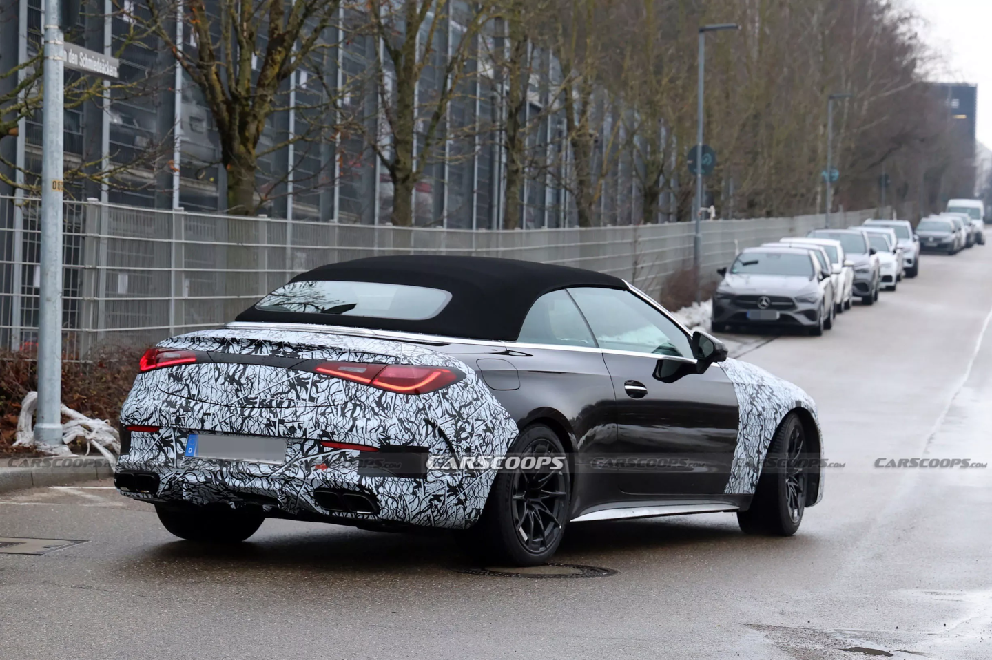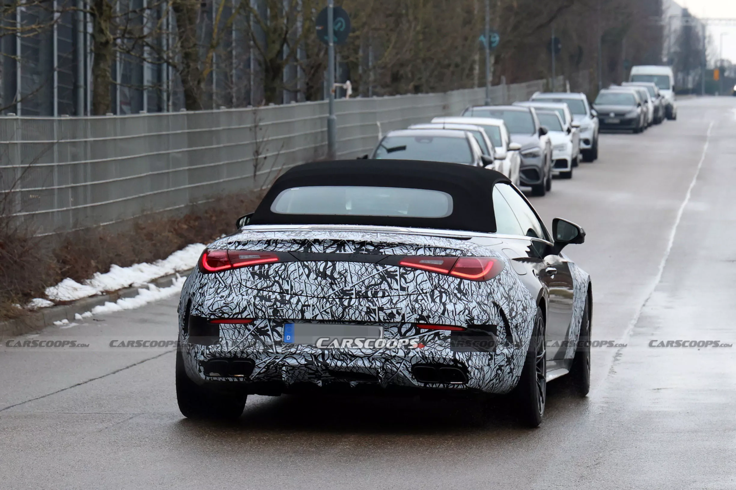 IT之家 2 月 20 日音讯,汽车媒体 CarScoops 昨日(2 月 19 日)发布博文,共享了一组捏拍的路测图,展示了正在测试的 2027 款梅赛德斯-AMG CLE 63 敞篷改款,证实了 V8 引擎的强势回想。