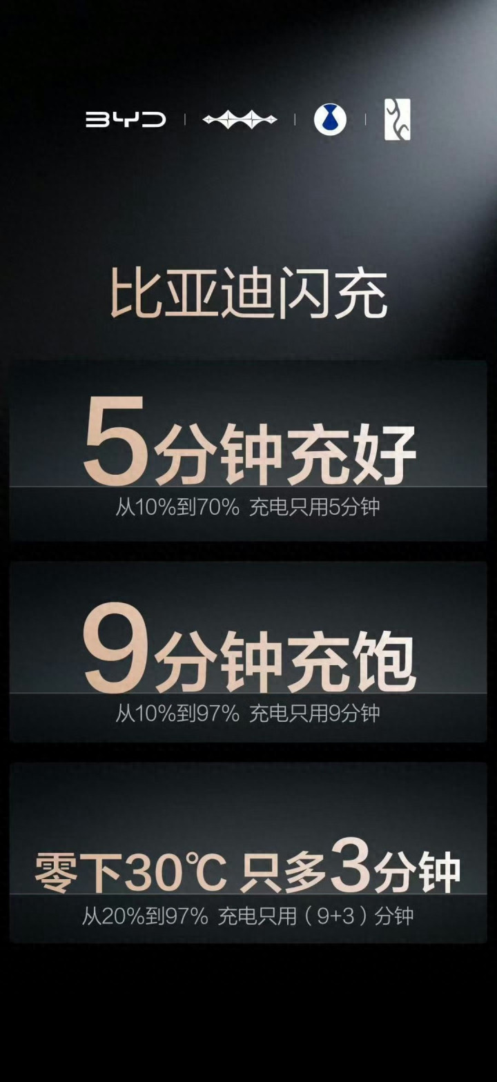 比亚迪兆瓦闪充和二代刀片电板时候昨晚发布,5分钟充70%,9分钟充97%,车型续航里程上1千公里,充电时间还不够上一回茅厕的时间,以后纯电新动力再也不怕跑高速了。