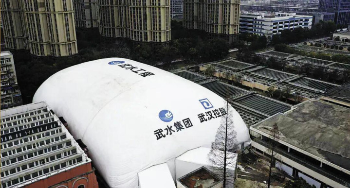 在湖北武汉市硚口区宗关水厂,一个气球状的白色巨型气膜近日引起不少市民暖和。