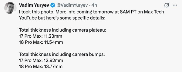 [CNMO科技音讯]近日,稀有码博主共享了iPhone18ProMax模子机与iPhone17ProMax模子的对比图像。图像露出,新机型保捏了一样的玄虚,但录像头区域的了得更厚,模组尺寸也更大。具体数据露出,iPhone18ProMax的全体厚度达到13.77毫米,较iPhone17ProMax的12.92毫米有彰着加多。若不计录像头了得部分,机身厚度也从11.23毫米增至11.54毫米。这标明加多的体积主要源于光学组件。