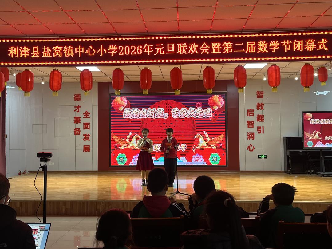 为营造浓厚的节日氛围,丰富校园文化活命,充分展示学生的精神风貌与艺术才华,近日,利津县盐窝镇中心小学举行2026年元旦联欢会暨第二届数学节落幕式。全校师生欢聚一堂,共同奏响辞旧迎新的欢欣喜章。