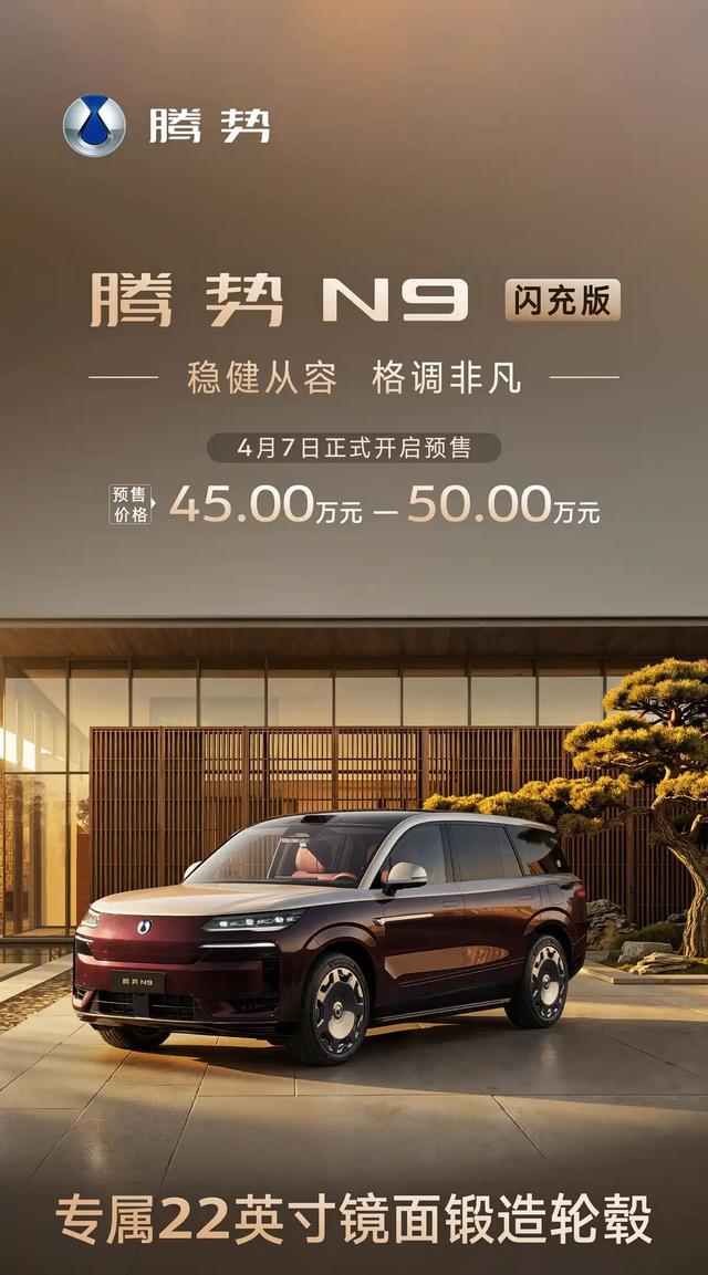 腾势N9闪充版追究开启预售:45万起,二代刀片电板+天使之眼5.0全系标配