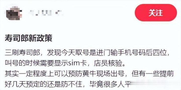 这几天,北京、上海、济南、杭州和天津的寿司郎门店皆暗暗改了端正,就算你提前在网上预约好了,到店还得再“签到”一遍,得输动手机号后四位,再把手机灵通蜂窝数据那一页让伙计看SIM卡尾号,伙计径直说了,这样作念等于为了防黄牛,之前岑岭时段列队能排到两三千桌,预约皆排到一个月之后了,二手平台上代列队明码标价从三十块到三百块不等。