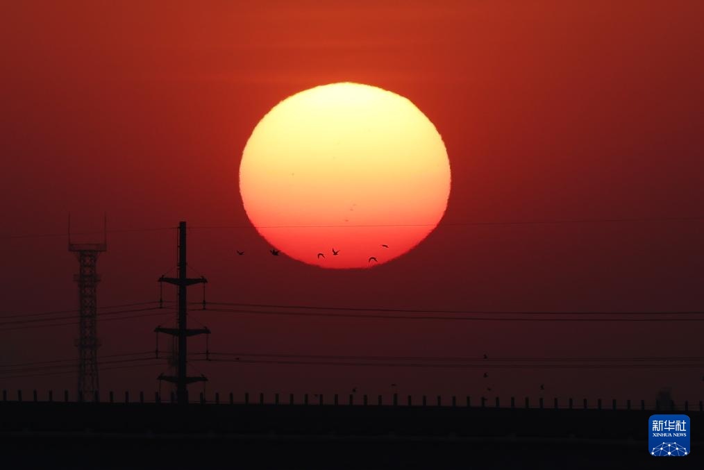 4月2日在辽宁丹东鸭绿江口候鸟栖息地拍摄的向阳与飞鸟开云体育。新华社记者 李钢 摄