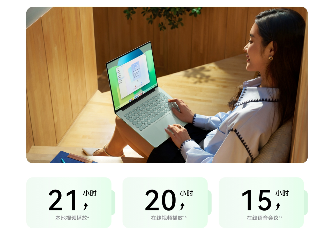 整机薄至14.5mm、轻约1.33kg,互助荒原绿、樱粉金等个性化配色,它在运筹帷幄好意思学上延续了华为一贯的品位。但确凿体现功力的处所在于里面。通过主板袖珍化本领,华为在有限的空间内塞入了70Wh的大电板,支捏最长21小时的土产货视频播放。这意味着用户十足不错带着它出差一整天而无需寻找电源。