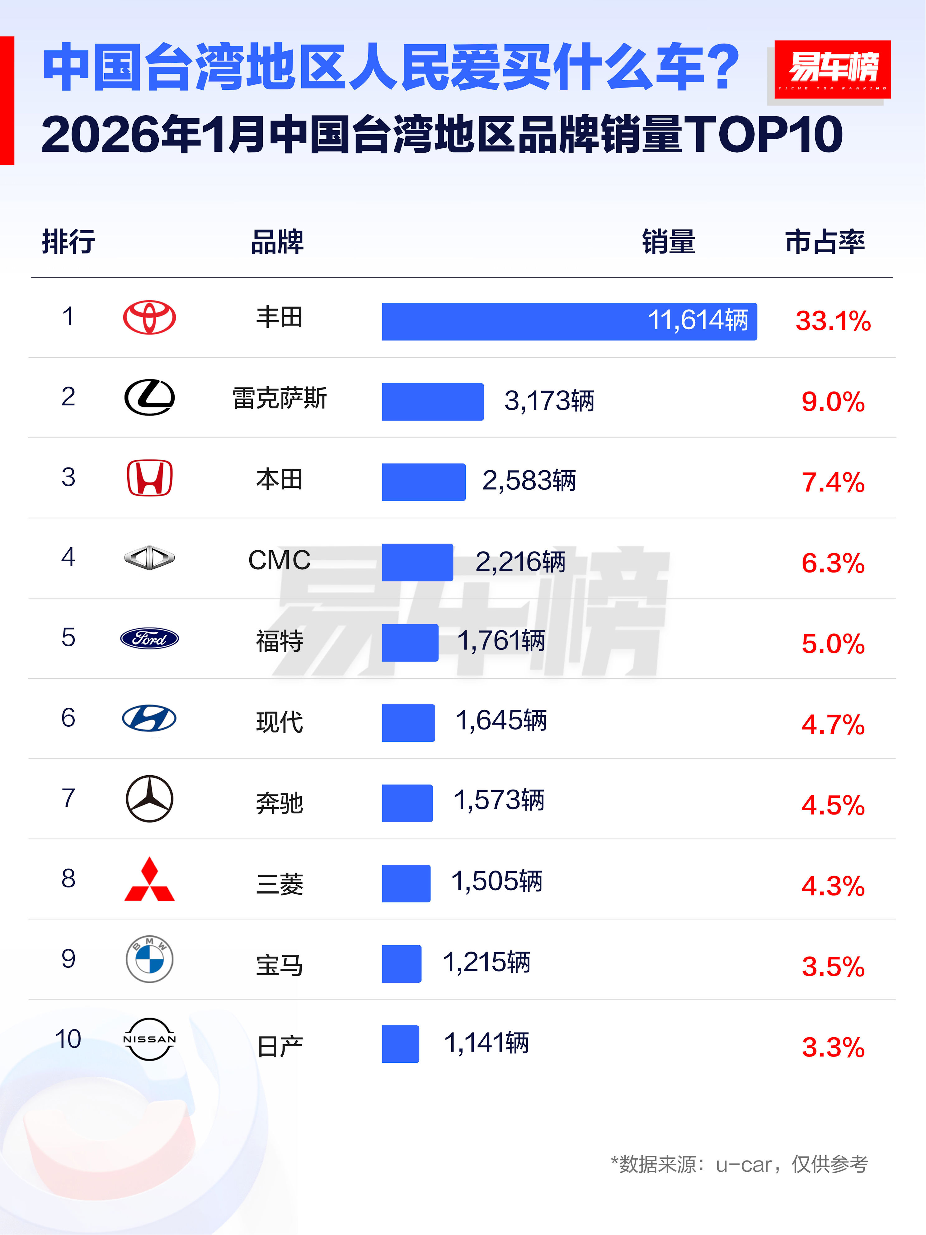 开云sports 丰田统率1月台湾车市:销量破万 市占率高达33.1%