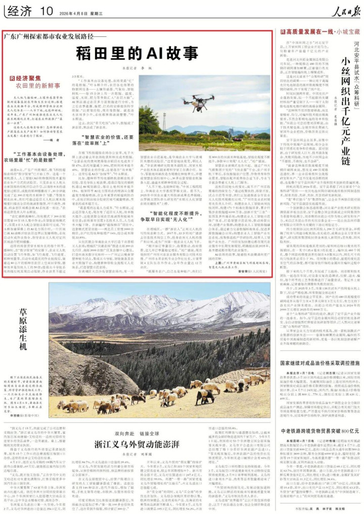 无东谈主机飞播稻田,泥土传感器等物联网拓荒监控农作物滋长全过程;搭建农业大数据平台,变成耕作管收全历程无东谈主化体系……东谈主不下地,也能种好地。连年来,广东广州加速鼓吹农业无东谈主化工夫鸿沟化应用,买通农业科技实行“终末一公里”。