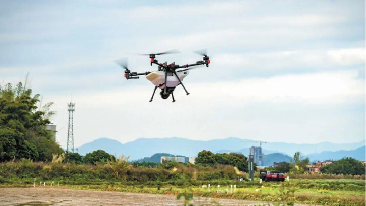 广州市黄埔区极飞科技超等农场,颖慧无东谈主机正在责任。