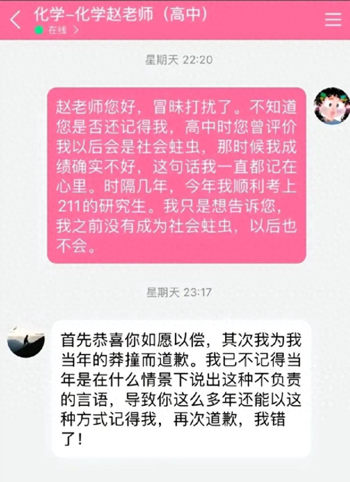 说真话,记这种仇长短常令东谈主不齿的,其时憨厚可能在一定的前提下智商说出这么的话,斗鱼体育中国官网入口弗成能莫名其妙就这么诽谤学生,但这也成为事实上学生勤劳图强的一个能源。但因此而记恨憨厚,是这个社会的失败。